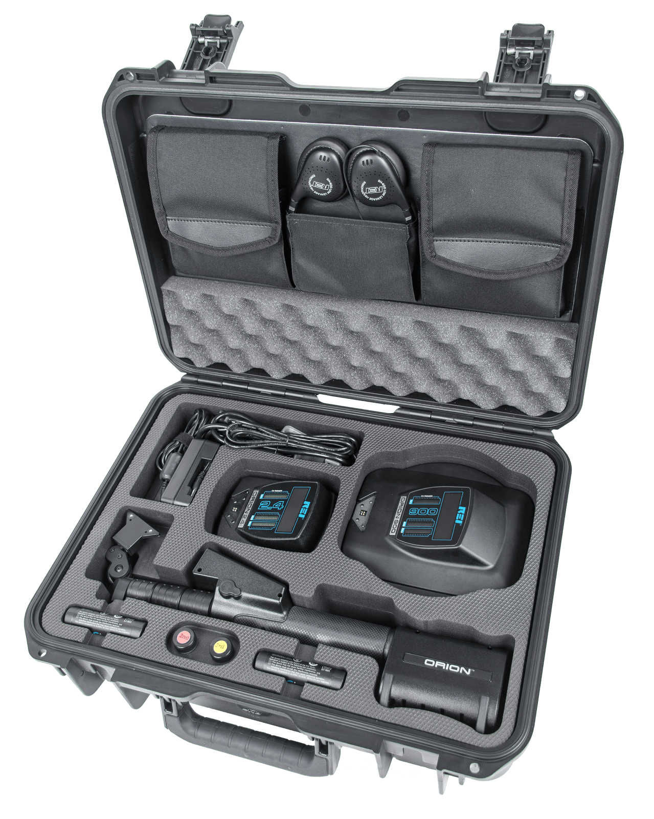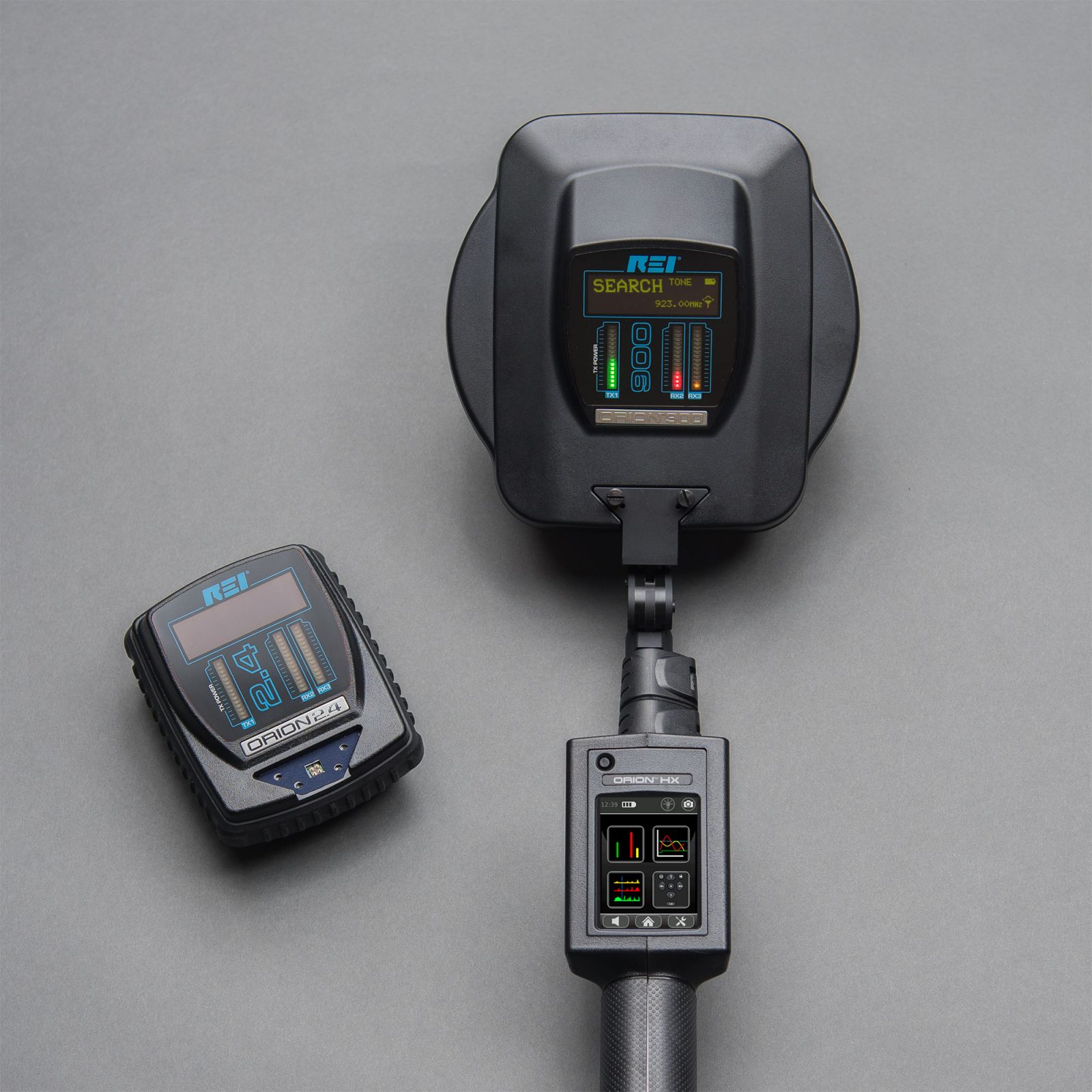 Le détecteur de jonction non linéaire portatif ORION HX Deluxe (NLJD) possède des têtes d’antenne interchangeables de 2,4 GHz et 900 MHz. L'ORION HX Deluxe est utilisé pour balayer les zones des composants électroniques à semi-conducteurs. De cette manière, ORION HX Deluxe détecte et aide à localiser les appareils électroniques cachés ou les dispositifs d’écoute, que l’appareil électronique soit allumé ou non.